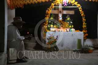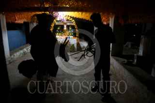 XOCHISTLAHUACA, ESTADO DE MÉXICO, 02NOVIEMBRE2020.- Danzas, rezos y música realizaron un pequeño grupo de personas que asistió al panteón municipal de Xochistlahuca para la tradicional velada de Día de Muertos, la poca asistencia es para evitar contagios de Covid-19, la autoridad municipal propuso el cierre del panteón durante las festividad de día de muertos, sin embargo, personas que se oponían al cierre quitaron las puertas del panteón para que la gente que quisiera asistir lo hiciera. FOTO: CARLOS ALBERTO CARBAJAL/CUARTOSCURO.COM