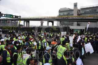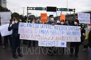CIUDAD DE MÉXICO, 03NOVIEMBRE2020.- Trabajadores de la aerolínea Interjet bloquearon el Circuito Interior en dirección al Aeropuerto Internacional de la Ciudad de México, exigen el pago de sus sueldos el cual ya tiene un adeudo de tres meses, en días anteriores, la empresa había cancelado los vuelos con motivo del. mantenimiento de sus aviones. La PROFECO informó que ya existe una demanda colectiva por parte de usuarios que resultaron afectados. FOTO: DANIEL AUGUSTO /CUARTOSCURO.COM