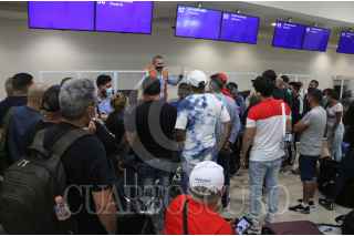 CANCÚN, QUINTANA ROO, 3NOVIEMBRE2020.- Por lo menos 70 personas que tenían boleto para volar a Camagüey, Cuba, con la aerolínea Viva Aerobús han quedado varadas en el Aeropuerto Internacional de Cancún, luego de que presuntamente la empresa sobrevendiera el vuelo. FOTO: ELIZABETH RUIZ/CUARTOSCURO.COM