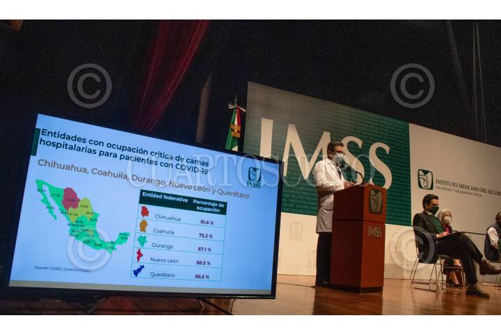 CIUDAD DE MÉXICO, 04OCTUBRE2020.- Zoé Robledo, director general del IMSS; Gisela Lara, titular del programa IMSS-BIENESTAR; Víctor Hugo Borja, director de Prestaciones Médicas, y Manuel Cervantes Ocampo, coordinador de Atención a la Salud en el Primer Nivel, durante la conferencia en la sede central del IMSS. FOTO: MOISÉS PABLO/CUARTOSCURO.COM