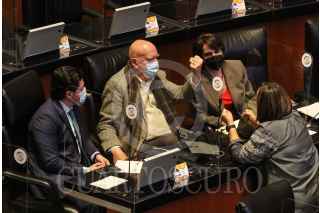 CIUDAD DE MÉXICO, 04NOVIEMBRE2020.- Legisladores durante sesión ordinaria en el Senado de la República, en donde se votó a favor del decreto para la aprobación de un informe por parte del ejecutivo sobre actividades desarrolladas por la Guardia Nacional así mismo se estipuló la última semana de febrero como la "Semana Nacional de la Salud Auditiva". FOTO: ROGELIO MORALES /CUARTOSCURO.COM