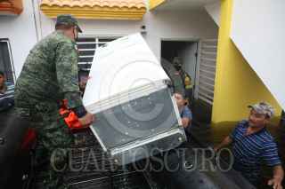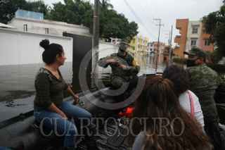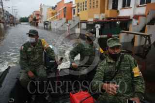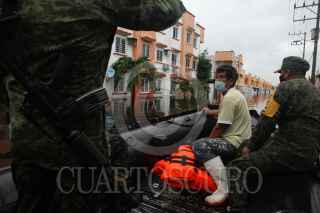 VILLAHERMOSA, TABASCO, 04NOVIEMBRE2020.- Personal de Buzos de Combate del Cuerpo de Fuerzas Especiales del Plan DN-III-E adscritos a la 30 Zona Militar de la Secretaría de la Defensa Nacional rescatan y evacuan a la población inundada en las rancherías Ixtacomitan, Río Viejo y Boquerón. FOTO: CARLOS CANABAL OBRADOR/CUARTOSCURO.COM