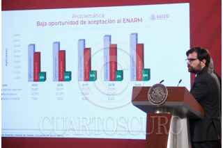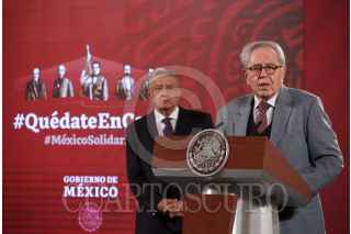 CIUDAD DE MÉXICO, 05NOVIEMBRE2020.- Andrés Manuel López Obrador, presidente de México, acompañado de Jorge Alcocer Varela, secretario de Salud; Hugo López-Gatell Ramírez, subsecretario de Prevención y Promoción de la Salud; Juan Ferrer Aguilar, director del Instituto de Salud para el Bienestar ( Insabi) y Alejandro Svarch Pérez, titular de la Coordinación Nacional Médica del Instituto de Salud para el Bienestar (Insabi), durante la conferencia matutina dedicada al tema de Salud que se llevó a cabo en Palacio Nacional. FOTO: ANDREA MURCIA /CUARTOSCURO.COM