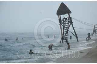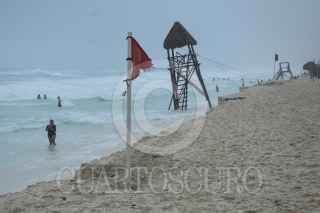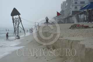 CANCÚN, QUINTANA ROO, 05NOVIEMBRE2020.- Frente frío erosiona kilómetros de playas de Cancún, pero es normal aseguran expertos y que volverá a la normalidad, imagen en la playa ballenas de este destino turístico donde continuan las lluvias. FOTO: ELIZABHET RUIZ /CUARTOSCURO.COM