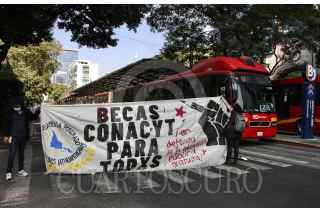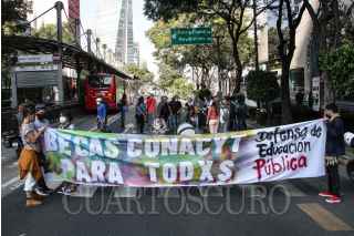 CIUDAD DE MÉXICO, 05NOVIEMBRE2020.- Estudiantes de posgrado de la Universidad Autónoma de México, realizaron una marcha la cual salió de la Rectoría de la universidad y terminó frente a las oficinas del Consejo Nacional de Ciencia y Tecnología, los estudiantes protestaron en contra de los recortes a las becas del Conacyt, así mismo exigen transparentar el proceso de otorgamiento de apoyos. FOTO: ROGELIO MORALES /CUARTOSCURO.COM