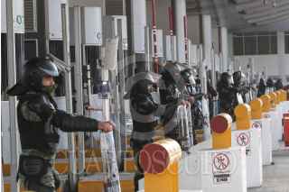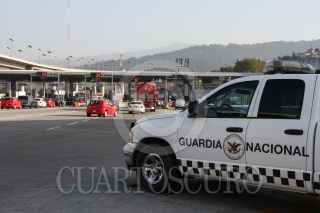 CIUDAD DE MÉXICO, 04NOVIEMBRE2020.- Tras las constantes tomas en las casetas de cobro, elementos de la Guardia Nacional, custodian la caseta de cobro México-Cuernavaca, esto con el objetivo de evitar la toma de los puntos de cobro de las carreteras mexicanas. Con un despliegue de más de 150 policías militares y decenas de patrullas, la caseta permanecerá vigilada. FOTO: ROGELIO MORALES /CUARTOSCURO.COM