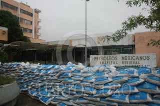 VILLAHERMOSA, TABASCO, 05NOVIEMBRE2020.- En el Hospital Regional de Pemex se observa la colocación de costaleria como medida de protección ante las lluvias torrenciales anunciadas para las próximas 48 horas. FOTO: CARLOS CABAL OBRADOR/CUARTOSCURO.COM