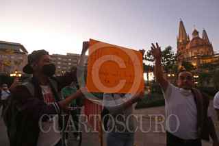 GUADALAJARA, JALISCO, 05NOVIEMBRE2020.- En evento denominado “Mega Mentada para Alfaro” decenas de tapatíos se reunieron enfrente de Palacio de Gobierno en el centro de la ciudad, para reclamar lo que clasifican una pésima administración la dirigida por el Gobernador del Estado Enrique Alfaro Ramírez y en diversas ocasiones le mentaron la madre al ejecutivo estatal. FOTO: FERNANDO CARRANZA GARCIA / CUARTOSCURO.COM