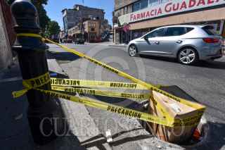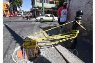 TOLUCA, ESTADO DE MÉXICO, 06NOVIEMBRE2020.- El mal estado de algunas coladeras pone en peligro a automovilistas y peatones, ante esto algunos ciudadanos colocan cintas de advertencia y cajas para que no suceda algún accidente, como en la calle de Villada casi esquina con Gómez Farías en la ciudad de Toluca. FOTO: CRISANTA ESPINOSA AGUILAR /CUARTOSCURO.COM