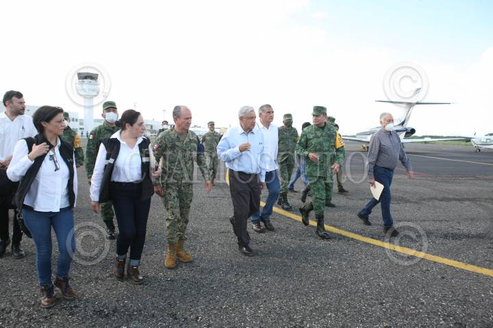 VILLAHERMOSA, TABASCO, 07NOVIEMBRE2020.- El presidente de México Andrés Manuel López Obrador en compañía de los secretarios de Marina, SEDENA, coordinadora Nacional de Protección Civil, gobernador Adán Augusto López Hernández y una comitiva, realizan un sobre vuelo a zonas afectadas por las lluvias en Tabasco. FOTO: CARLOS CABAL OBRADOR/ CUARTOSCURO.COM