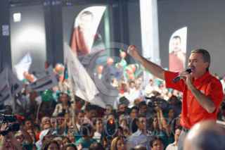 GUADALAJARA, JALISCO10JUNIO2006.- Roberto Madrazo, candidato a la presidencia de la coalición PRI PVEM y Mariano Palacios Alcozer,presidenta nacional del PRI, durante su reunión con promotores del voto, como un acto procelitista de su camapaña para las elecciones. FOTO:Juan Flores/CUARTOSCURO.COM