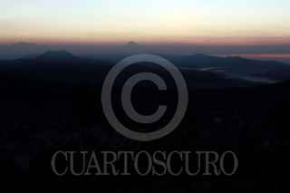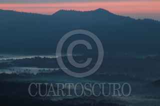 XALATLACO, ESTADO DE MÉXICO, 08NOVIEMBRE2020.- Con los primeros rayos del sol se va iluminando el paisaje de conos volcánicos en el Bosque de Agua, en la frontera entre Morelos, Ciudad de México y EDOMEX. FOTO: MARGARITO PÉREZ RETANA /CUARTOSCURO.COM