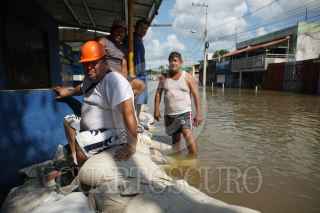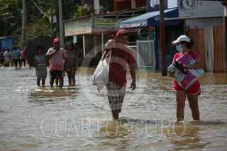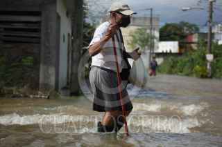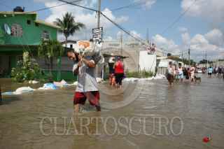 VILLAHERMOSA, TABASCO, 08NOVIEMBRE2020.- El río Carrizal del cual proviene sus aguas de las Presas Peñitas desbordó su caudal en el sector Los Sauces, de la colonia José María Pino Suárez. De la misma manera habitantes en esta parte de la población piden auxilio a las autoridades del gobierno por temor a que continúe creciendo el nivel, ya que no se abastecen para auxiliarse entre ellos. FOTO: CARLOS CANABAL OBRADOR/CUARTOSCURO.COM