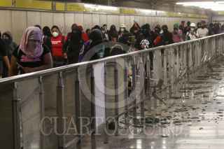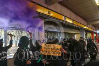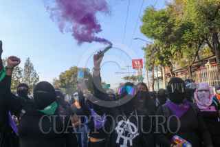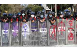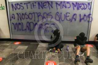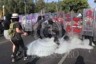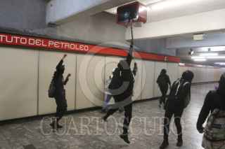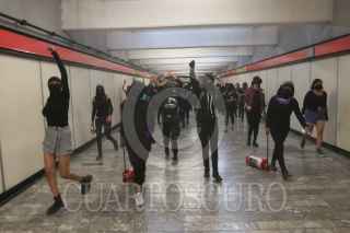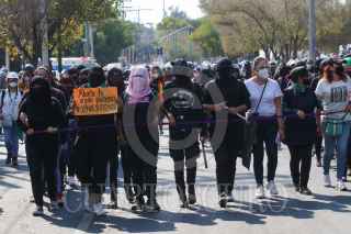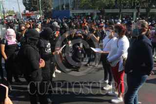 CIUDAD DE MÉXICO, 08NOVIEMBRE2020.- Mujeres integrantes de la Colectiva "Politécnicas Al Grito de Guerra" e integrantes de Bloque Negro se manifestaron en Avenida de las Torres, colonia Industrial Vallejo, cerca de las inmediaciones del IPN, sin embargo, cuando pretendían llegar a la dirección general de este instituto fueron encapsuladas por policías de la Secretaría de Seguridad Ciudad. Las inconformes se manifestaron por los casos de acoso sexual, machismo y diversas agresiones que viven las estudiantes en el IPN, sin que las autoridades castiguen a los responsables. Las manifestantes fueron escoltadas hacia el metro Instituto del Petróleo en donde realizaron pintas y rompieron vidrios. FOTO: GRACIELA LÓPEZ/CUARTOSCURO.COM