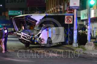 AGUASCALIENTES, AGUASCALIENTES, 08NOVIEMBRE2020.- Una unidad del transporte público choco contra un auto particular, este último se paso el alto. Los hechos en avenida Mahatma Gandhi. El percance dejo un saldo de una persona muerta y seis lesionados, tres de ellos de gravedad. FOTO: LIBERTO UREÑA/CUARTOSCURO.COM