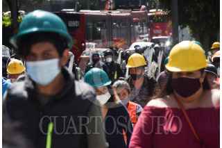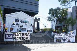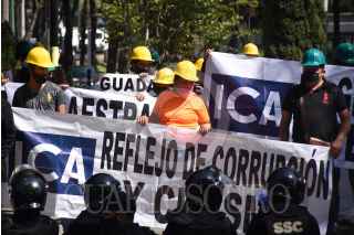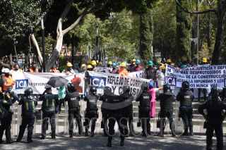 CIUDAD DE MÉXICO, 09NOVIEMBRE2020.- Trabajadores de empresas subcontratadas por ICA protestaron afuera de las instalaciones de la empresa y se disponían a marchar rumbo al aeropuerto de la ciudad pero elementos de la policía capitalina impidieron su paso encapsulados a la altura de Av. De Los Insurgentes. Los trabajadores exigen el pago de sus salarios. FOTO: DANIEL AUGUSTO /CUARTOSCURO.COM