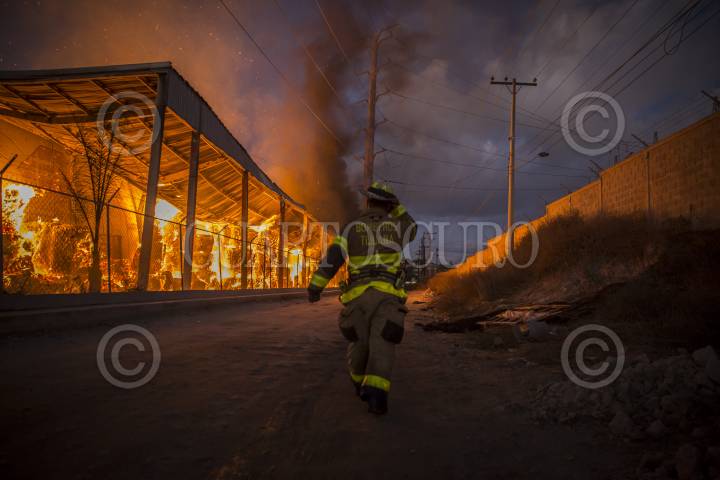 TIJUANA, BAJA CALIFORNIA, 09NOVIEMBRE2020.- Fuerte incendio consumió parte de la fábrica de corrugados Sinil ubicada en el Parque Industrial Pacífico. El hecho ocurrió alrededor de las 4:00 hrs del este lunes y obligó al cierre de las vialidades. Al lugar acudieron socorristas de las Cruz Roja, elementos de Protección Civíl y alrededor de 40 elemenos del cuerpo de Bomberos para extinguir el fuego. La planta está ubicada en avenida Los Cabos, a un costado de una subestación de la Comisión Federal de Electricidad (CFE), en medio de maquiladoras y frente a una guardería. No se reportaron heridos. FOTO: OMAR MARTÍNEZ /CUARTOSCURO.COM
