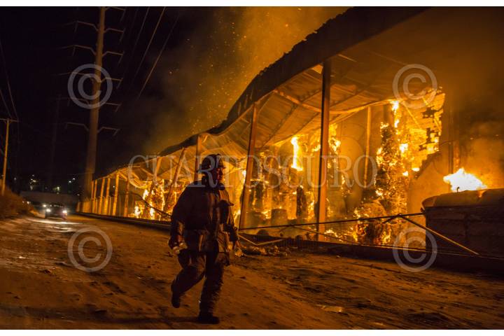 TIJUANA, BAJA CALIFORNIA, 09NOVIEMBRE2020.- Fuerte incendio consumió parte de la fábrica de corrugados Sinil ubicada en el Parque Industrial Pacífico. El hecho ocurrió alrededor de las 4:00 hrs del este lunes y obligó al cierre de las vialidades. Al lugar acudieron socorristas de las Cruz Roja, elementos de Protección Civíl y alrededor de 40 elemenos del cuerpo de Bomberos para extinguir el fuego. La planta está ubicada en avenida Los Cabos, a un costado de una subestación de la Comisión Federal de Electricidad (CFE), en medio de maquiladoras y frente a una guardería. No se reportaron heridos. FOTO: OMAR MARTÍNEZ /CUARTOSCURO.COM