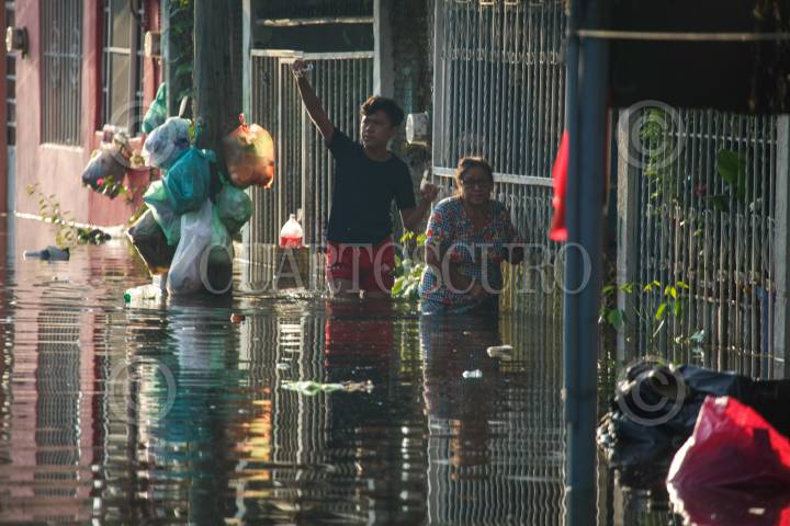 VILLAHERMOSA, TABASCO, 10NOVIEMBRE2020.- Habitantes del sector Explanada de Gaviotas Sur informaron que desde la madrugada empezó a crecer el agua que desborda la laguna El Camaron y río Grijalva por lo que empezaron a salir de sus viviendas. De la misma manera denuncian a las autoridades que hay vándalos que aprovechan para robar. FOTO: CARLOS CANABAL OBRADOR/CUARTOSCURO.COM