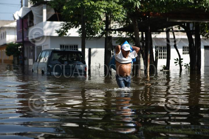 VILLAHERMOSA, TABASCO, 10NOVIEMBRE2020.- Habitantes del sector Explanada de Gaviotas Sur informaron que desde la madrugada empezó a crecer el agua que desborda la laguna El Camaron y río Grijalva por lo que empezaron a salir de sus viviendas. De la misma manera denuncian a las autoridades que hay vándalos que aprovechan para robar. FOTO: CARLOS CANABAL OBRADOR/CUARTOSCURO.COM