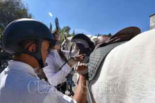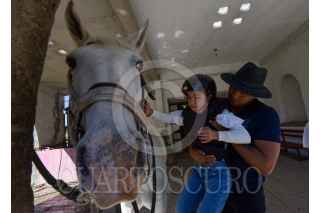 TOLUCA, ESTADO DE MÉXICO, 10NOVIEMBRE2020.- Obed Aguilar y Estefany Reyes iniciaron el proyecto “Galopando sin límites”, que consiste en dar equitación y equinoterapia de forma inlcluyente para niños y jóvenes con Síndrome de Down, conocieron este proyecto en Colombia y lo inician en México, siendo los pioneros en formar un equipo de equitación para niños con Síndrome de Down, hasta el momento sólo tienen como alumnos a 2 niñas y un niño, buscan que en e algún momento puedan abrirse espacios para poder competir en un futuro no lejano, tienen una cuota de recuperación pequeña para que pueda ser accesible a todos los interesados, y practican dia veces a la semana durante una hora. FOTO: CRISANTA ESPINOSA AGUILAR /CUARTOSCURO.COM