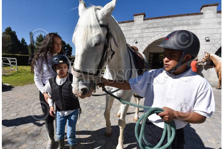 TOLUCA, ESTADO DE MÉXICO, 10NOVIEMBRE2020.- Obed Aguilar y Estefany Reyes iniciaron el proyecto “Galopando sin límites”, que consiste en dar equitación y equinoterapia de forma inlcluyente para niños y jóvenes con Síndrome de Down, conocieron este proyecto en Colombia y lo inician en México, siendo los pioneros en formar un equipo de equitación para niños con Síndrome de Down, hasta el momento sólo tienen como alumnos a 2 niñas y un niño, buscan que en e algún momento puedan abrirse espacios para poder competir en un futuro no lejano, tienen una cuota de recuperación pequeña para que pueda ser accesible a todos los interesados, y practican dia veces a la semana durante una hora. FOTO: CRISANTA ESPINOSA AGUILAR /CUARTOSCURO.COM