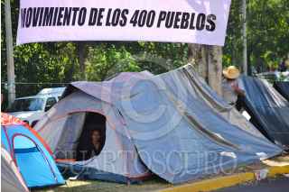 XALAPA, VERACRUZ, 10NOVIEMBRE2020.- Tras guardar luto por la muerte de su líder, César del Ángel, integrantes de "Los 400 Pueblos" se manifestaron en las inmediaciones de la Fiscalía General del Estado de Veracruz, ahí instalaron un campamento para exigir que destraben las denuncias que pesan sobre Miguel Ángel Yunes Linares, ex gobernador del estado; Jorge Winckler, ex fiscal, y Estrella Iglesias, quien actualmente se desempeña como magistrada. FOTO: YERANIA ROLÓN/CUARTOSCURO.COM