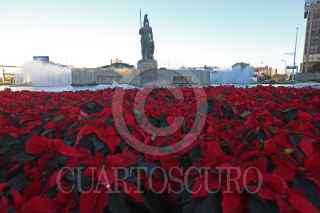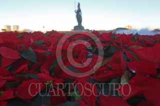 GUADALAJARA, JALISCO, 10NOVIEMBRE2020.- Después de haber lucido reluciente de amarillo el entorno de Glorieta de la Minerva por las festividades del día de muertos y la flores de cempasúchil tradicionales de México, ahora se viste de rojo por las festividades navideñas y el Ayuntamiento de Guadalajara coloco cerca de 2 mil 800 plantas de Nochebuena también representativas de nuestro país y adoptadas a nivel mundial en vísperas decembrinas. FOTO: FERNANDO CARRANZA GARCIA / CUARTOSCURO.COM