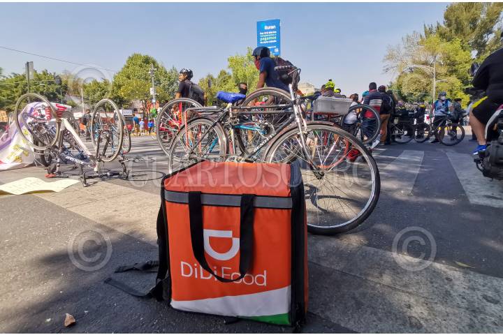 CIUDAD DE MÉXICO, 11NOVIEMBRE2020.- Repartidores bloquearon Insurgentes, a la altura de la calle Luis Donald Colosio, para exigir justicia por su compañero Mario Trejo, quien fue atropellado el 5ñ6 de noviembre por una unidad del transporte público, en el desnivel de Eje 2 Norte e Insurgentes. Los inconformes señalan que a pesar de que ayer habían llegado un acuerdo con Semovi de que Mario iba ser trasladado a otra clínica, por que en la que actualmente está por una negligencia médica perdió la pierna. Además acusan que el responsable es un chófer que ya tiene varias denuncias de haber atropellado al menos a 6 personas sigue libre ya que no se le finco ninguna responsabilidad. La unidad involucrada pertenece a la ruta 1 del corredor Copesa y tiene el número 0012514. FOTO: MOISÉS PABLO/CUARTOSCURO.COM