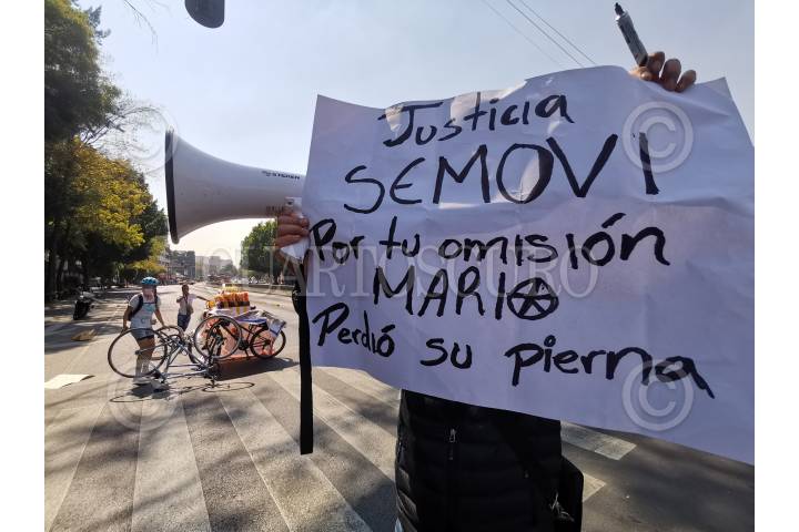 CIUDAD DE MÉXICO, 11NOVIEMBRE2020.- Repartidores bloquearon Insurgentes, a la altura de la calle Luis Donald Colosio, para exigir justicia por su compañero Mario Trejo, quien fue atropellado el 5ñ6 de noviembre por una unidad del transporte público, en el desnivel de Eje 2 Norte e Insurgentes. Los inconformes señalan que a pesar de que ayer habían llegado un acuerdo con Semovi de que Mario iba ser trasladado a otra clínica, por que en la que actualmente está por una negligencia médica perdió la pierna. Además acusan que el responsable es un chófer que ya tiene varias denuncias de haber atropellado al menos a 6 personas sigue libre ya que no se le finco ninguna responsabilidad. La unidad involucrada pertenece a la ruta 1 del corredor Copesa y tiene el número 0012514. FOTO: MOISÉS PABLO/CUARTOSCURO.COM