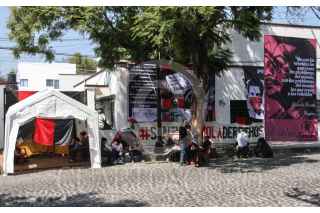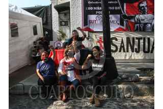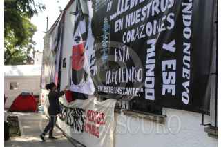 CIUDAD DE MÉXICO, 11NOVIEMBRE2020.- Miembros del Sindicato Único de trabajadores de Notimex, (SutNotimex), colocaron un campamento a la as afueras de la sede alterna de la agencia ubicada en la calle África de la alcaldía Coyoacán, con el objetivo de impedir el acceso a personal que sigue laborando pese a la huelga que lleva 266 días. FOTO: ROGELIO MORALES /CUARTOSCURO.COM