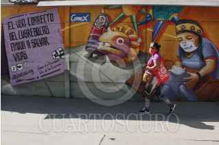 CIUDAD DE MÉXICO, 12NOVIEMBRE2020.- Debido a la pandemia por COVID-19, diversas autoridades a nivel nacional han impulsado el uso de la mascarilla con el objetivo de reducir los contagios en sus estados. En imagen una mujer camina frente a un mural que invita al uso de cubrebocas en la alcaldía Xochimilco. FOTO: ROGELIO MORALES /CUARTOSCURO.COM