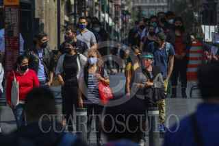 CIUDAD DE MÉXICO, 12NOVIEMBRE2020.- La Jefa de Gobierno, Claudia Sheinbaum Pardo, señaló en su conferencia de prensa que la ciudad se acerca al rojo en el semáforo epidemiológico debido a que las hospitalizaciones de pacientes Covid-19 van alza, pues ya suman más de 3 mil. También resalto que el número de llamadas al 911 ha incrementado de personas con síntomas de Coronavirus. En zonas como el Centro Histórico la cantidad de personas que caminan por sus calles hace casi imposible mantener una sana distancia. FOTO: MOISÉS PABLO/CUARTOSCURO.COM