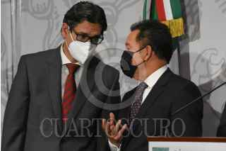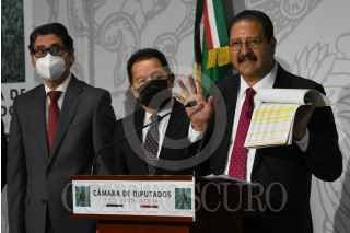 CIUDAD DE MÉXICO, 12NOVIEMBRE2020.- Ignacio Mier, coordinador de Morena en la Cámara de Diputados, ofreció una conferencia de prensa acompañado por Pablo Gómez, diputado morenista, Erasmo González, presidente de la Comisión de Presupuesto y el coordinador del PT, Reginaldo Sandoval, para hablar sobre la situación de la discusión del PEF2021. FOTO: DANIEL AUGUSTO /CUARTOSCURO.COM