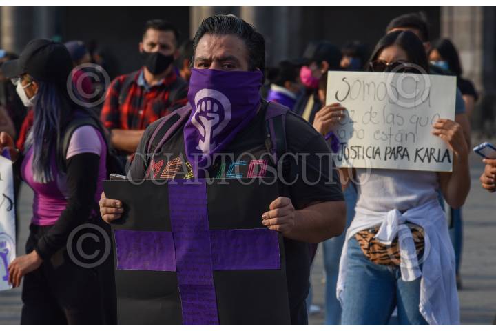 TOLUCA, ESTADO DE MÉXICO, 12NOVIEMBRE2020.- Con una marcha pacífica integrantes de Revoltosas Colectiva de Mujeres Feministas Diversas de Toluca marcharon al Centro de Justicia para las Mujeres para exigir justicia por el feminicidio de Karla y todos los feminicidios que se han registrado en los últimos días, así como el esclarecimiento de los ocurridos en los últimos años en el Estado de México, al grito de justicia por segundo día consecutivo se unieron hombres y mujeres. FOTO: CRISANTA ESPINOSA AGUILAR /CUARTOSCURO.COM