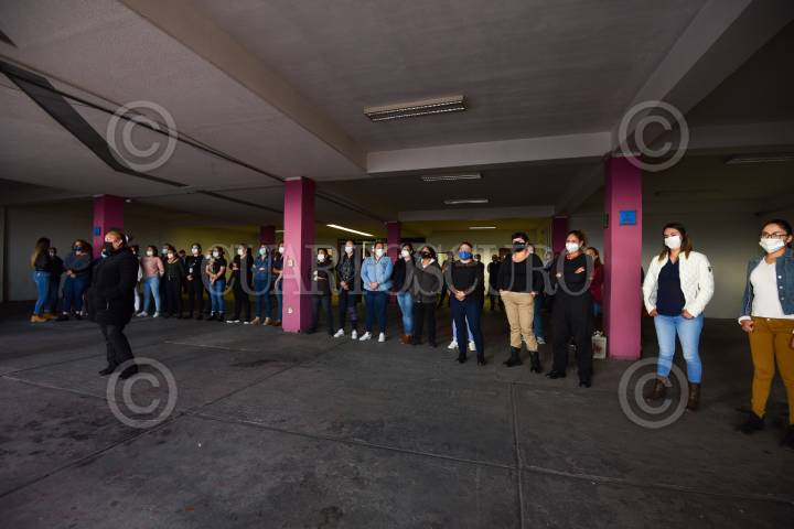 TOLUCA, ESTADO DE MÉXICO, 12NOVIEMBRE2020.- Con una marcha pacífica integrantes de Revoltosas Colectiva de Mujeres Feministas Diversas de Toluca marcharon al Centro de Justicia para las Mujeres para exigir justicia por el feminicidio de Karla y todos los feminicidios que se han registrado en los últimos días, así como el esclarecimiento de los ocurridos en los últimos años en el Estado de México, al grito de justicia por segundo día consecutivo se unieron hombres y mujeres. FOTO: CRISANTA ESPINOSA AGUILAR /CUARTOSCURO.COM
