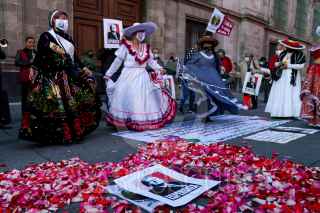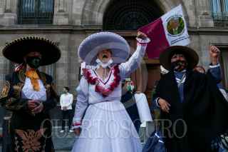 CIUDAD DE MÉXICO, 13NOVIEMBRE2020.- Desde la noche de ayer y las primeras horas de hoy, simpatizantes del presidente Andrés Manuel López Obrador acudieron a la entrada de Palacio Nacional, sobre la calle Moneda, para llevarle “Las Mañanitas” al mandatario con motivo de su cumpleaños. Al ritmo de la tambora, la trompeta y la tuba, los asistentes corearon y desearon salud al jefe del ejecutivo. FOTO: GALO CAÑAS/CUARTOSCURO.COM