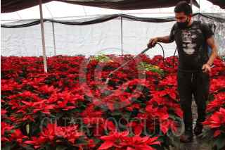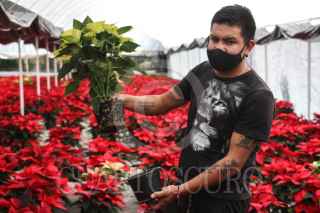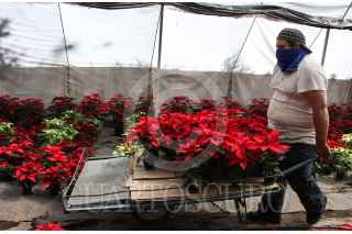 CIUDAD DE MÉXICO, 13NOVIEMBRE2020.- La familia Mendoza lleva más de 20 años cultivando flor de temporada en Xochimilco, especialmente la Nochebuena, la cual se comienza su tratamiento desde el mes de marzo, cabe mencionar que para este año Laura Mendoza, redujo su producción de esta flor en un 30 %, esto debido a la pandemia por COVID-19 que afecta a nuestro país. En este sentido la familia está sacando a la venta cerca de 200 flores a la semana, esto previo a las festividades navideñas, con costos que oscilan entre los 20 y 120 pesos la mayor parte de su producto termina en venta local en el Mercado de Cuemanco. FOTO: ROGELIO MORALES /CUARTOSCURO.COM