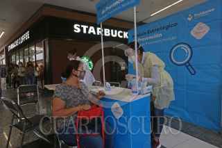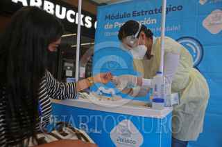 GUADALAJARA, JALISCO, 13NOVIEMBRE2020.- Después la desactivación del botón de emergencia, el Gobierno del Estado a través de la Secretaria de Salud Jalisco, implemento un operativo donde se establecieron diversos Módulos Estratégicos de Prevención de Covid-19 en diferentes puntos de la ciudad, como en algunos puntos donde se involucra el transporte publico y en plazas comerciales, esto para realizar pruebas rápidas aleatorias de coronavirus. FOTO: FERNANDO CARRANZA GARCIA / CUARTOSCURO.COM