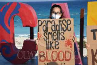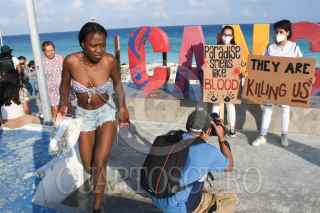 CANCÚN, QUINTANA ROO, 14NOVIEMBRE2020.- Manifestantes marchan en la zona hotelera de Cancún para exigir justicia por los feminicidios en este destino turístico. FOTO: ELIZABETH RUIZ/CUARTOSCURO.COM