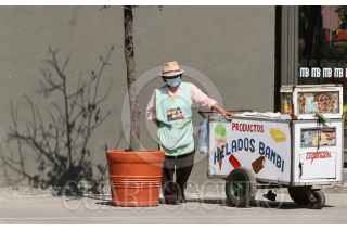 CIUDAD DE MÉXICO, 14NOVIEMBRE2020.- Como consecuencia de la contingencia por COVID-19, cerca de 12 millones de personas han perdido su empleo, esto se vio reflejado en el incremento del trabajo informal el cual se elevo en un 56% esto de acuerdo con el Instituto Nacional de Estadística y Geografía. En imagen, una mujer espera clientes a lado de su carrito de helados, sobre avenida Paseo de la Reforma. FOTO: ROGELIO MORALES /CUARTOSCURO.COM