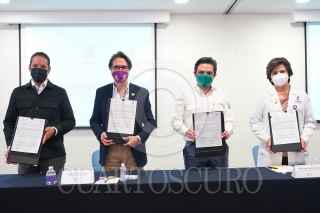 QUERÉTARO, QUERÉTARO, 14NOVIEMBRE2020.- El Instituto Mexicano del Seguro Social (IMSS) y la Fundación Teletón Vida, I.A.P., firmaron un Convenio de Colaboración de Prestación de Servicios Oncológicos que permitirá brindar atención terapéutica y servicios de diagnóstico, tratamiento, control y vigilancia de pacientes que el Instituto refiera al Hospital Infantil Teletón de Oncología (HITO) en Querétaro. El convenio de colaboración fue firmado por el director general del IMSS, Maestro Zoé Robledo y la doctora Lourdes Vega Vega, directora del HITO. FOTO: IMSS/CUARTOSCURO.COM