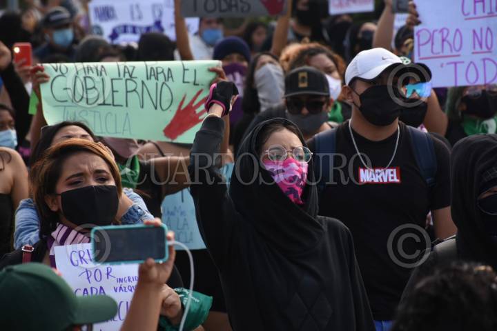 CANCÚN, QUINTANA ROO, 15NOVIEMBRE2020.- Mujeres marcharon para pedir justicia por el feminicidio de Bianca Alejandrina "Alexis" y por la represión policial que vivieron durante una manifestación en las inmediaciones del Palacio Municipal de Cancún. Durante la movilización pintaron la sede del edificio del ayuntamiento, monumentos y vehículos oficiales. FOTO: ELIZABETH RUIZ/CUARTOSCURO.COM