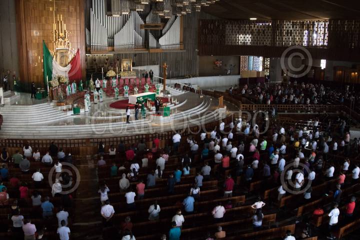 CIUDAD DE MÉXICO, 14NOVIEMBRE2020.- El Arzobispo Primado de México, Carlos Aguiar Retes, encabezó la homilía en la Basílica de Guadalupe, la cual albergó un aforo limitado de personas. Aunque falta poco más de tres semanas para los festejos guadalupanos del 12 de diciembre peregrinos de diferentes estados de la República ya empezaron a visitar el santuario. FOTO: MOISÉS PABLO/CUARTOSCURO.COM