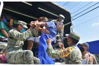 VILLAHERMOSA, TABASCO, 15NOVIEMBRE2020.- El Ejército Mexicano y la Fuerza Aérea Mexicana continúan aplicando el Plan DN-III-E en el estado beneficiando a más de 80,000 personas. Los militares han realizado actividades de apoyo en los municipios de Teapa, Cunduacán, Centro, Mascuspana, y Jalpa de Méndez, realizando actividades entre las que destacan: evacuación de personas, entrega de raciones caliente, suministro de agua potable, distribución de colchonetas, consultas médicas, y la colocación de sacos de arena para la contención de los niveles pluviales. FOTO: SEDENA/CUARTOSCURO.COM