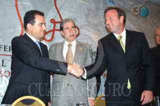 MÉXICO, D.F. 12JUNIO2006.- Eduardo Medina Mora, Secretario de Seguridad Pública Federal; Daniel Cabeza de Vaca, Procurador General de la República, y Julio Frenk Mora, Secretario de Educación Pública, durante la inauguración de la conferencia internacional