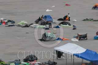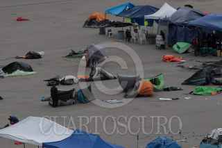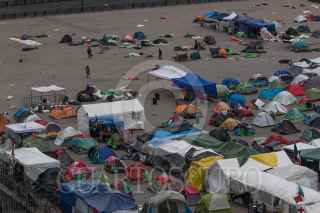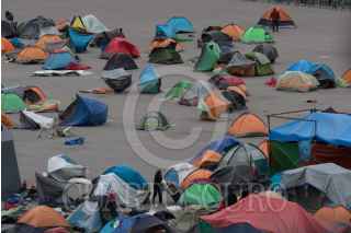 CIUDAD DE MÉXICO, 17NOVIEMBRE2020.- Integrantes del Frente Nacional Anti-AMLO (FRENA) comenzaron a replegar su campamento que mantienen desde hace casi un mes en el zócalo. Las pocas personas que aún permanecen en el lugar levantaron casas de campañas para colocarse solo en la mitad de la plancha. El sábado pasado el líder de este movimiento Gilberto Lozano había llamado sus seguidores a levantar el campamento con miras a una marcha que realizarán el próximo 21 de noviembre y la cual tiene como objetivo llegar al zócalo. FOTO: MOISÉS PABLO/CUARTOSCURO.COM