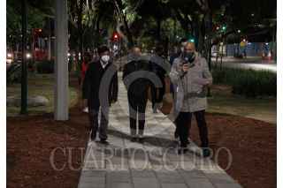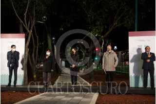 CIUDAD DE MÉXICO, 17NOVIEMBRE2018. - Claudia Sheinbaum Pardo, jefa de Gobierno de la Ciudad, acompañada de Francisco Chíguil Figueroa, alcalde Gustavo Madero; Jesús Antonio Esteban, secretario de obras públicas y Manuel García Ortega, coordinador general del C5, durante el recorrido por la obra del Sendero Seguro Camina Libre, Camina Segura en el Camellón Central Eje 5 Norte. FOTO: ANDREA MURCIA /CUARTOSCURO.COM
