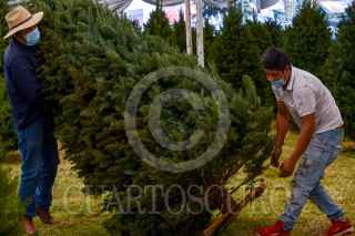 METEPEC, ESTADO DE MÉXICO, 18NOVIEMBRE2020.- Durante la temporada decembrina se ofrecen una gran variedad de árboles para adornar los hogares mexicanos, desde la producción nacional hasta la importada, cómo es el caso de la Expo Pinos Navideños los cuales proviene de los estados de Oregon y Whasington, en los Estados Unidos; algunas de las especies de pinos que ofrecen son Douglas, Noble y Norman, al natural o de colores, los precios van de los 600 hasta 6 mil pesos, dependiendo el tamaño, algunas personas acuden ya a seleccionar su pino. FOTO: CRISANTA ESPINOSA AGUILAR /CUARTOSCURO.COM
