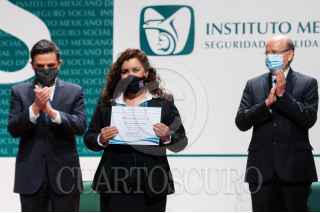 CIUDAD DE MÉXICO, 18NOVIEMBRE2020.- El Instituto Mexicano del Seguro Social (IMSS) entregó reconocimientos al personal del TAOD (Técnicas y Técnicos en Atención y Orientación al Derechohabiente), el acto fue encabezado por el director general del Instituto, Zoé Robledo y el secretario general del sindicato de trabajadores del IMSS, Arturo Olivares Cerda. FOTO: DANIEL AUGUSTO /CUARTOSCURO.COM
